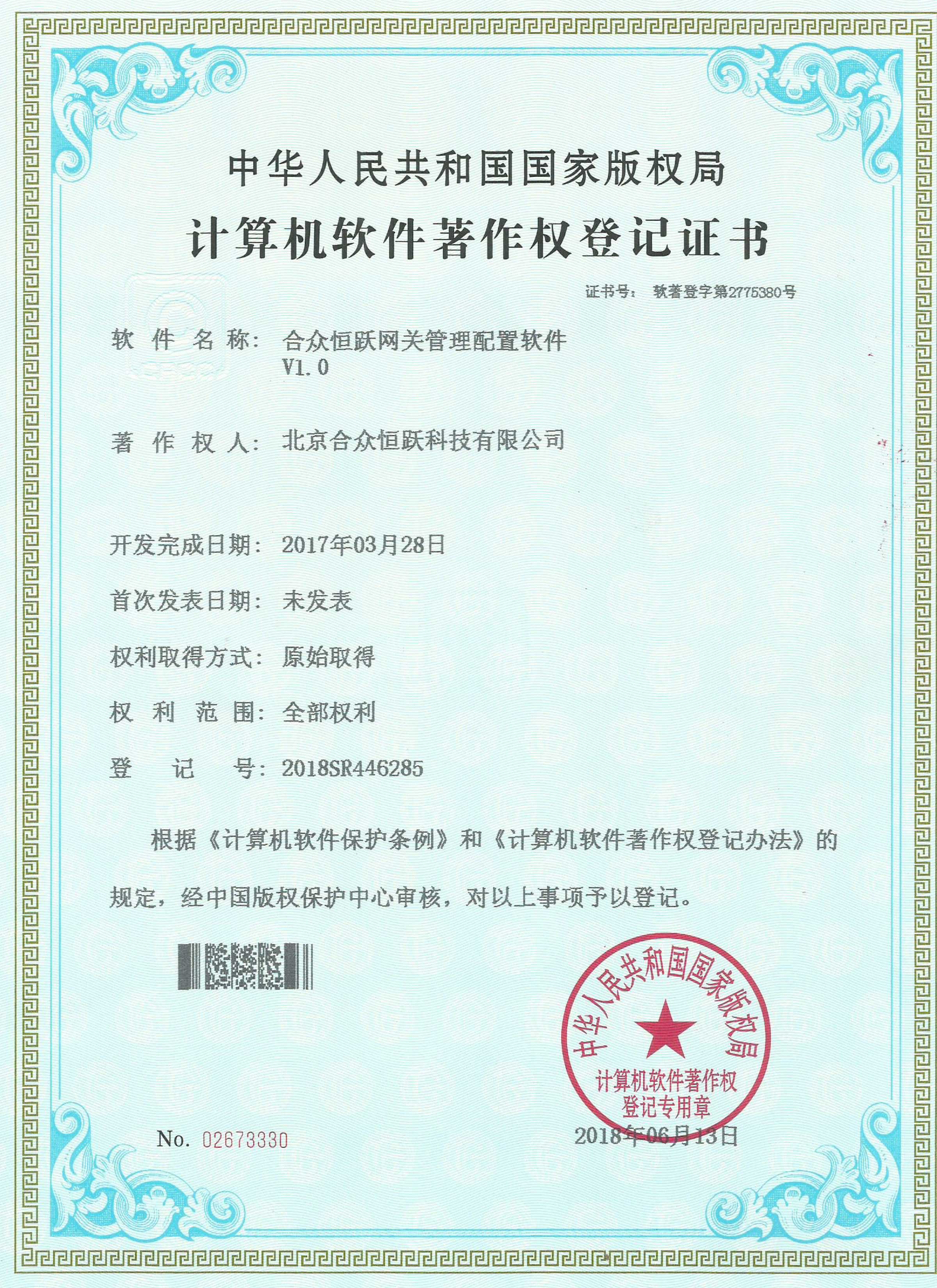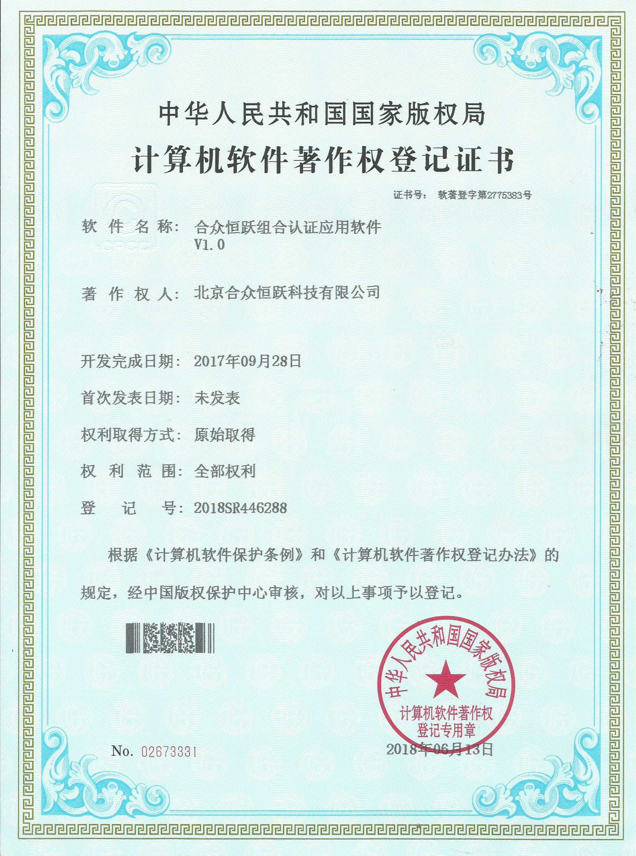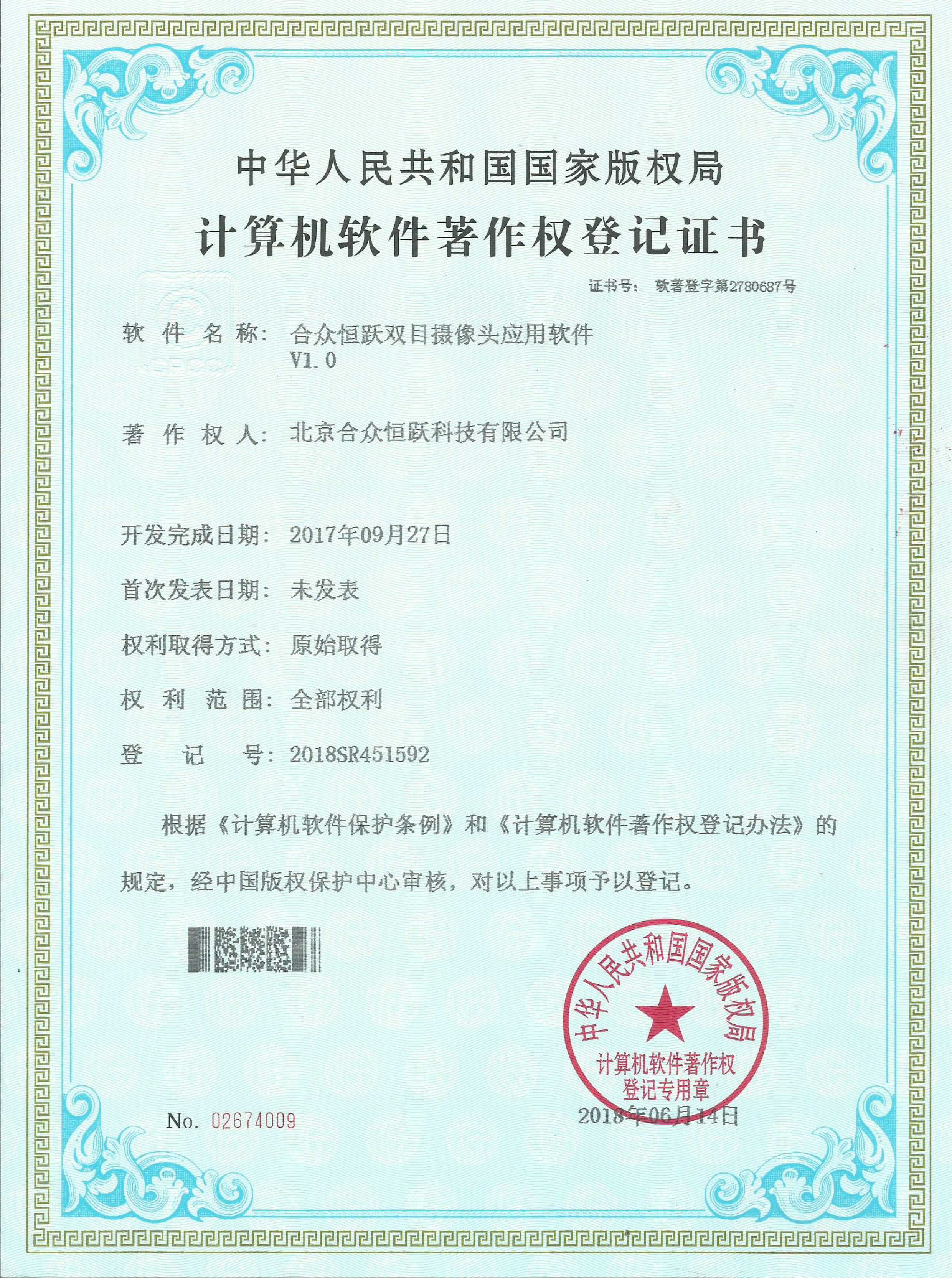 ● 7月 取得多项软件的著作权证书